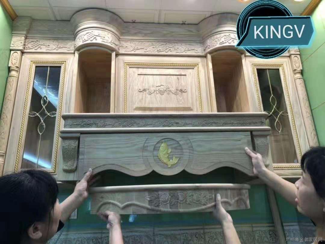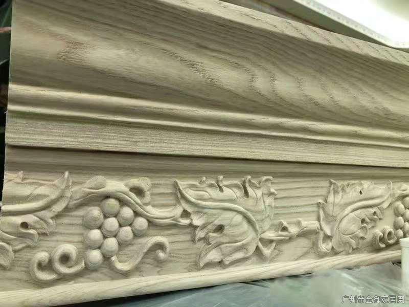 頂線的雕花形狀類似葡萄樹與葡萄果實,寓意著以后生活更加飽滿,美國紅橡材質的那粗獷的紋路更能體現雕花的精妙之處與其深秒的寓意。